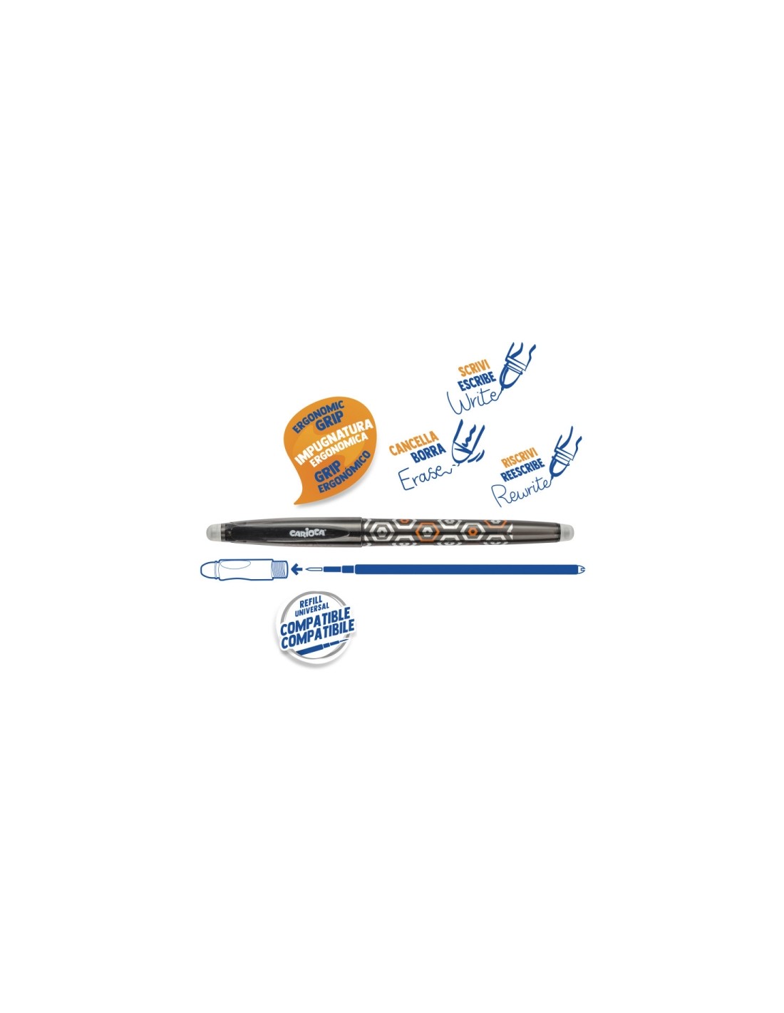 Carioca Oops Pop Expositor de 24 Canetas Apagáveis - Termossensível - Pega Texturizada - Ponta de Ø 0,7mm - Dupla Borracha - R